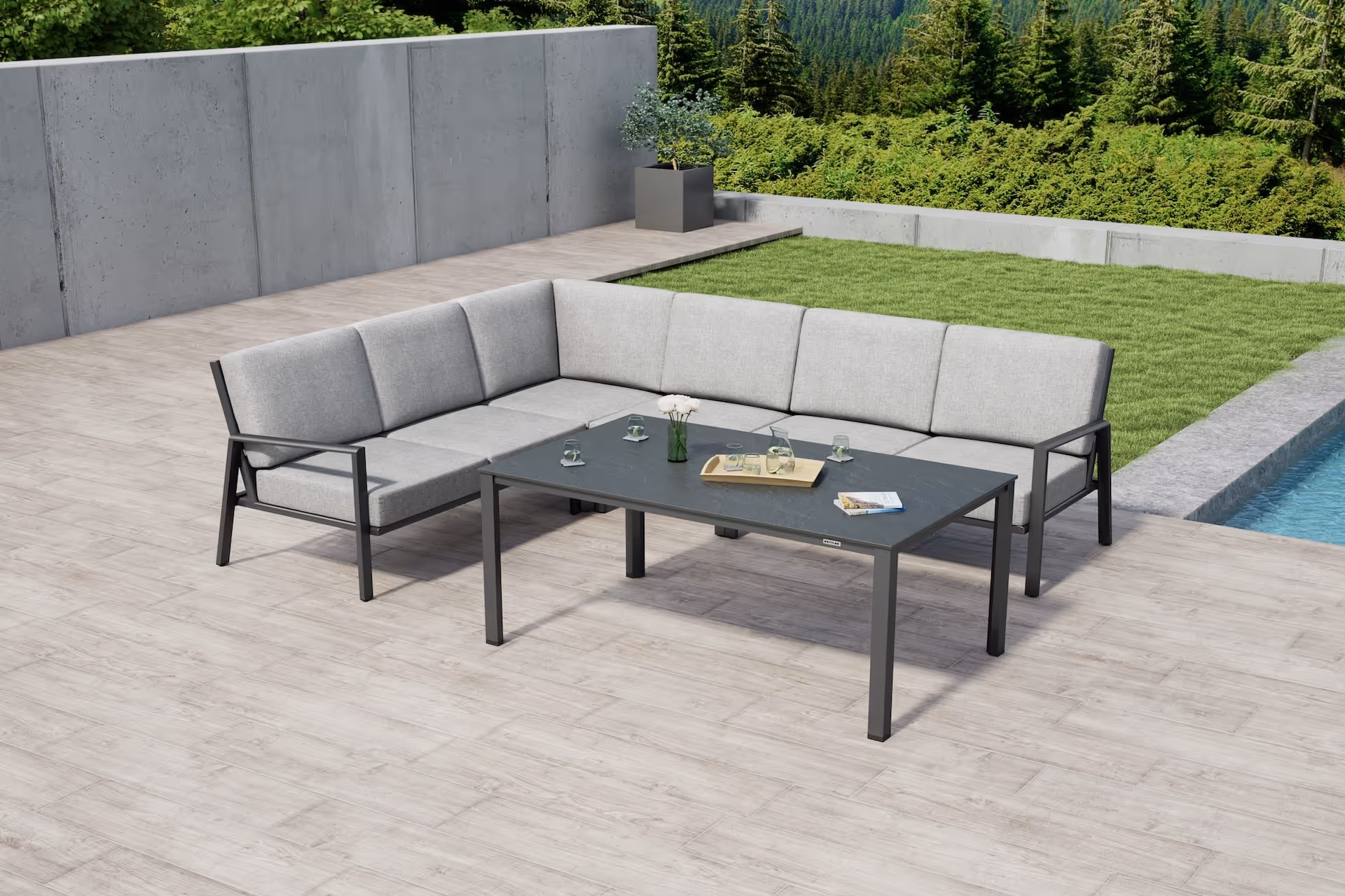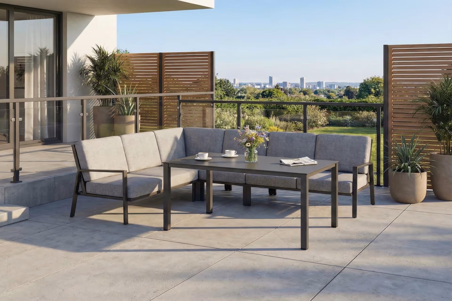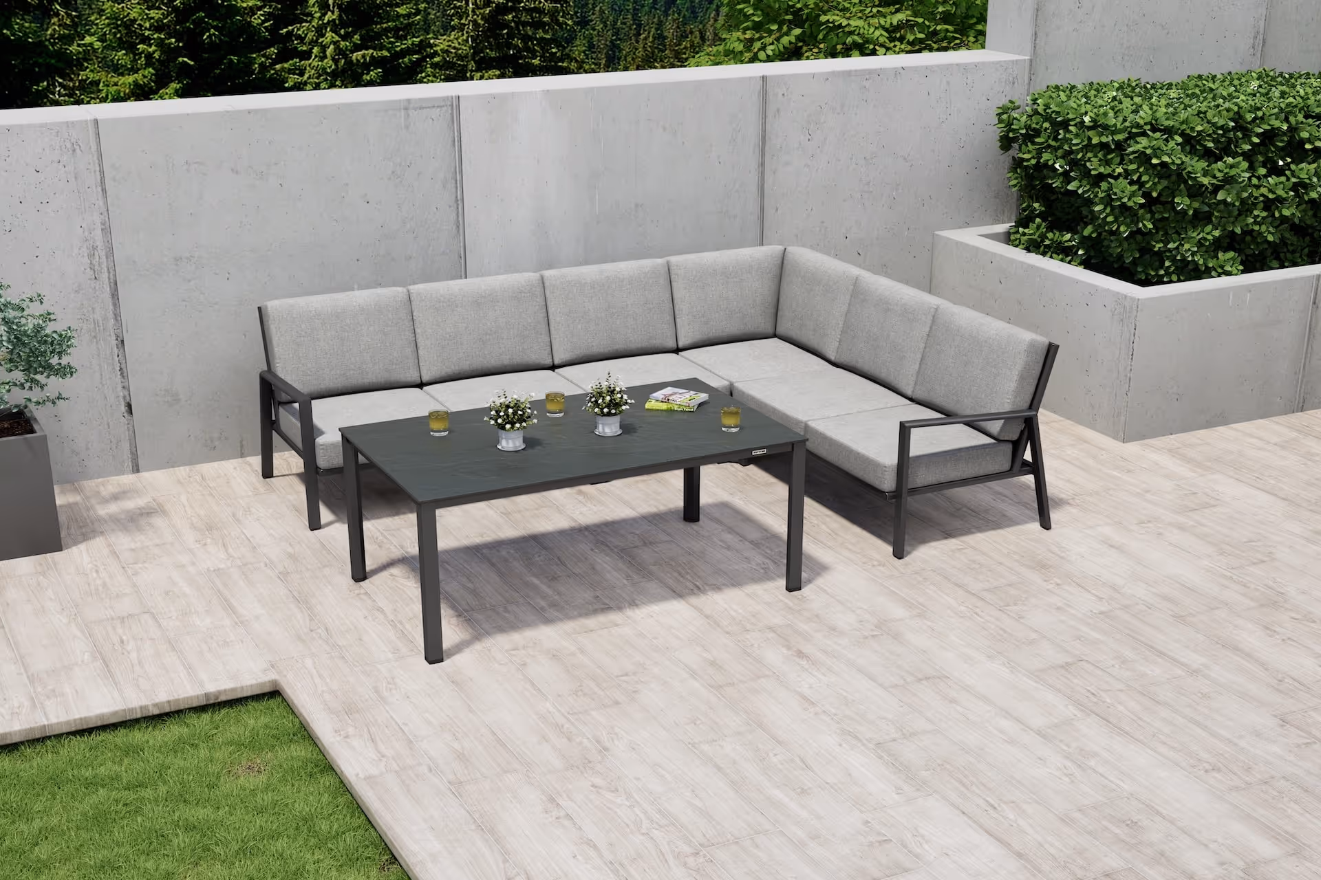 Die ZENITH Aluminium-Lounge für stilvolle Outdoor-Momente. Diese geradlinige Lounge vereint modernes Design mit durchdachtem Komfort: Das stabile Aluminiumgestell sorgt für Leichtigkeit und Langlebigkeit – perfekt für den Außenbereich. Die extra dicken, weich gepolsterten Sitz- und Rückenkissen bieten eine angenehme Unterstützung und laden zum Verweilen ein.